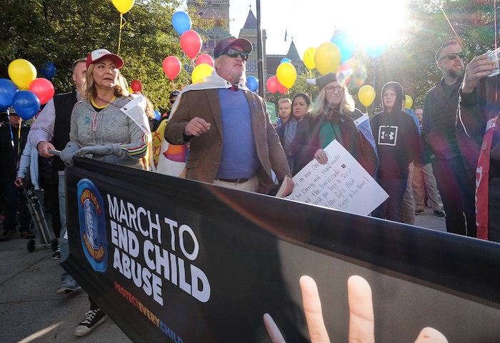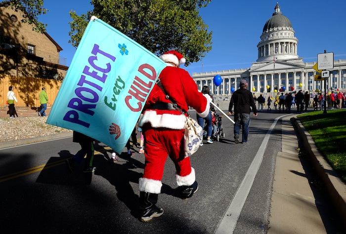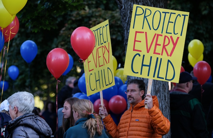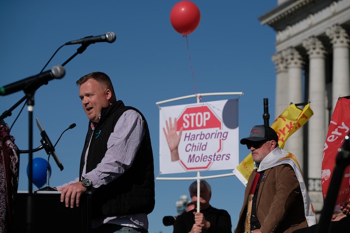 The people standing below him on the Capitol lawn carried red, yellow and blue balloons — representing the primary colors taught in the children’s songbook in Latter-day Saint churches representing courage, service and truth. Some hefted signs that said, “Protect every child” and “Keep children safe.” A few pushed strollers with babies cooing. Many shared their own stories of abuse.