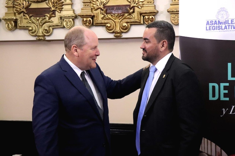 (Photo courtesy of The Church of Jesus Christ of Latter-day Saints) Gary Doxey, associate director for the International Center for Law and Religion Studies at Brigham Young University, greets Congressman Jonathan Prendas Rodriguez in Costa Rica. A delegation from The Church of Jesus Christ of Latter-day Saints joined interfaith, academic and government leaders in Central America in late October.