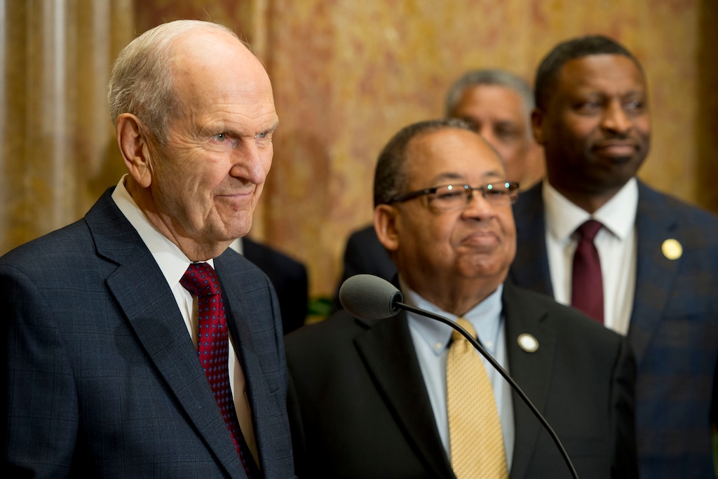 In yet another symbolic gesture of racial unity, LDS Church President Russell M. Nelson joined with top NAACP leaders Monday in calling for an end to “prejudice of all kinds.”