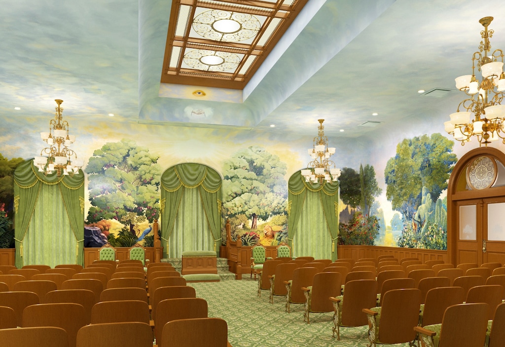 At that time, Andy Kirby, director of historic temple renovations, promised that the interiors would be enhanced and improved but remain essentially the same. The hand-painted murals in ordinance rooms would be cleaned and repaired, leaving the colors “brighter and more vivid,” he said, and the rituals performed by live actors would remain part of the ceremony.