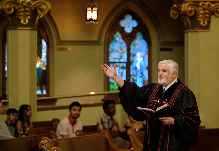 “One of the great things about ministry here is that spiritual things are ‘on the agenda’ for people in a way that they are not in other areas,” says Aeschbacher, who was chosen as interim pastor after the Rev. Michael J. Imperiale retired in June 2019 (a permanent replacement has yet to be named). “Our congregation has a long history of cooperation with other faiths [and] with many local groups to serve the needy, including St. Vincent DePaul, Crossroads Urban Center, the Utah Food Bank, and more.”