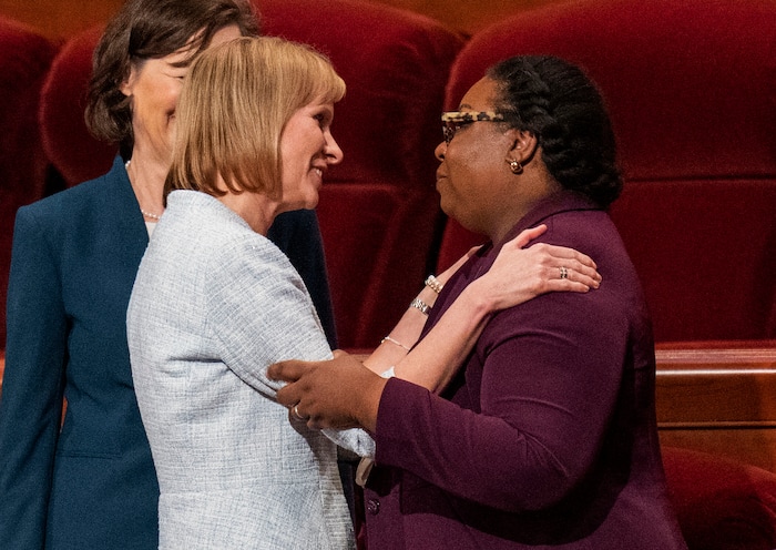 New general presidencies for the women’s Relief Society and children’s Primary were named at the start of Saturday afternoon’s session.