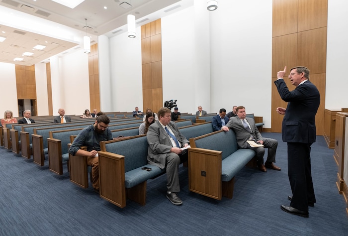 (Francisco Kjolseth | The Salt Lake Tribune) Elder Kevin Pearson, Utah Area president for The Church of Jesus Christ of Latter-day Saints, provides a media tour of the new 95 State meetinghouse on Friday, April 8, 2022.