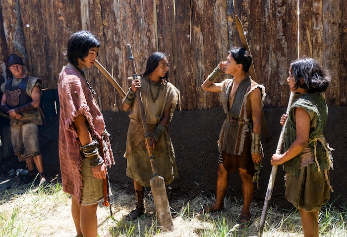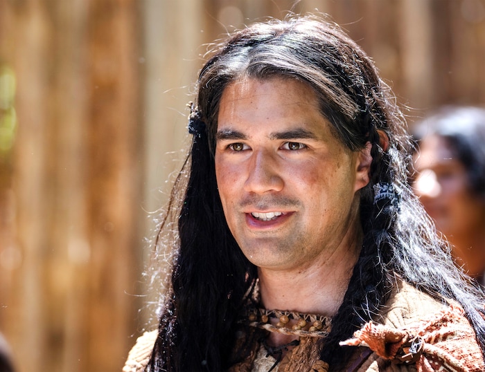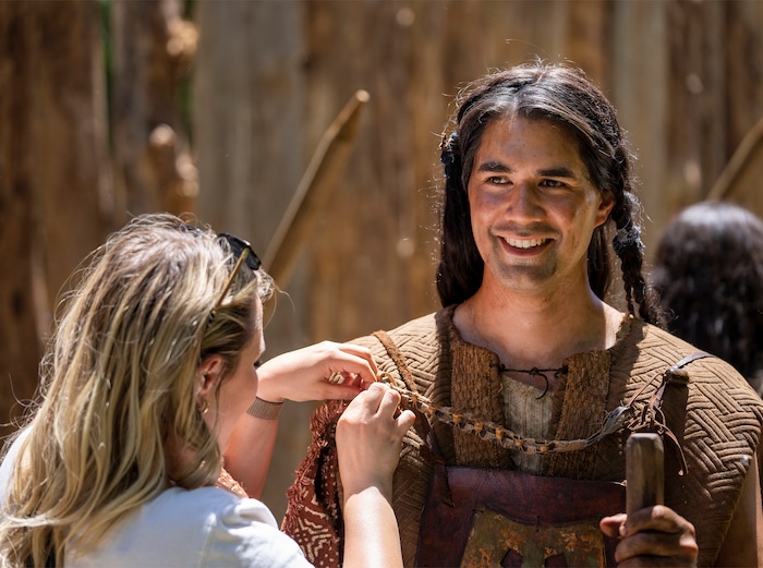 Provo • Brandon Beltrain is dressed in a tunic and leather sandals, his black hair reaching his shoulders. He’s surrounded by thatched huts and fire pits. Around him are similarly attired men, preparing for the looming battle.