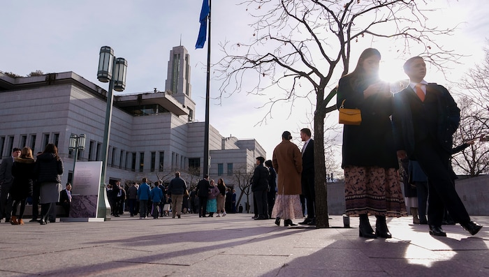 (Leah Hogsten | The Salt Lake Tribune) Members of The Church of Jesus Christ of Latter-day Saints await the morning session of General Conference on Saturday, April 1, 2023.