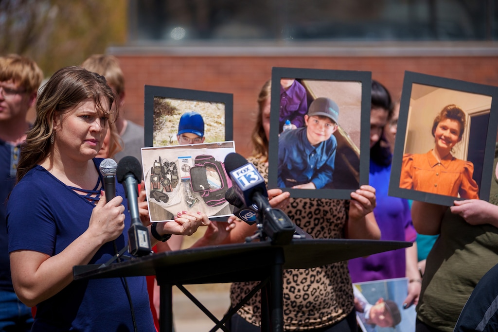 (Trent Nelson | The Salt Lake Tribune) Sarah Johnson talks about her missing son at a news conference to draw attention to missing FLDS children, in Cedar City on Monday, April 17, 2023.