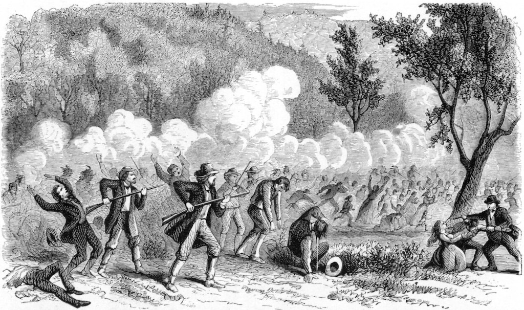 A leader, John D. Lee, representing the territorial militia, went into the emigrants’ wagon fort, waving a white flag, and promising them safe passage if they put down their arms and came out. Instead, as the emigrants emerged to walk in a single file, the militiamen shot the men at close range, and then helped Paiutes slaughter women and children.