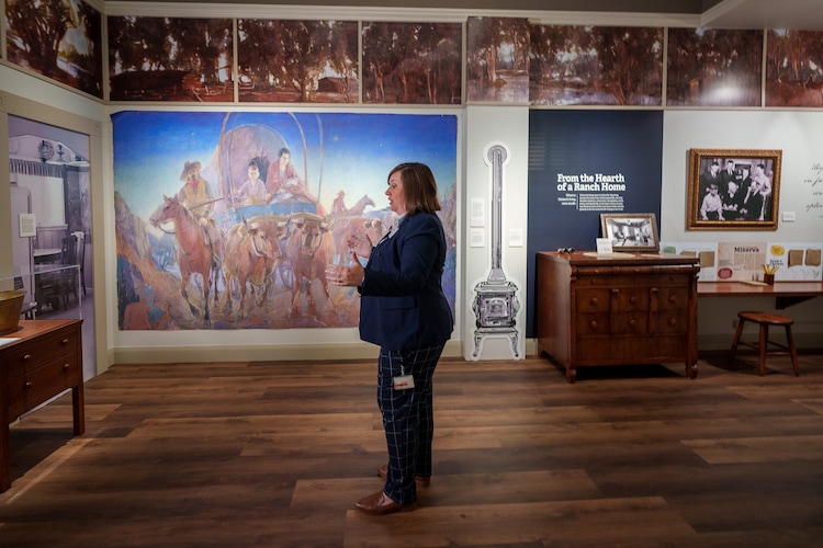 (Trent Nelson | The Salt Lake Tribune) Church History Museum Director Riley Lorimer stands in a space meant to replicate Minerva Teichert's home and workspace in the exhibition “With This Covenant in My Heart: The Art and Faith of Minerva Teichert,” in Salt Lake City on Thursday, July 6, 2023.