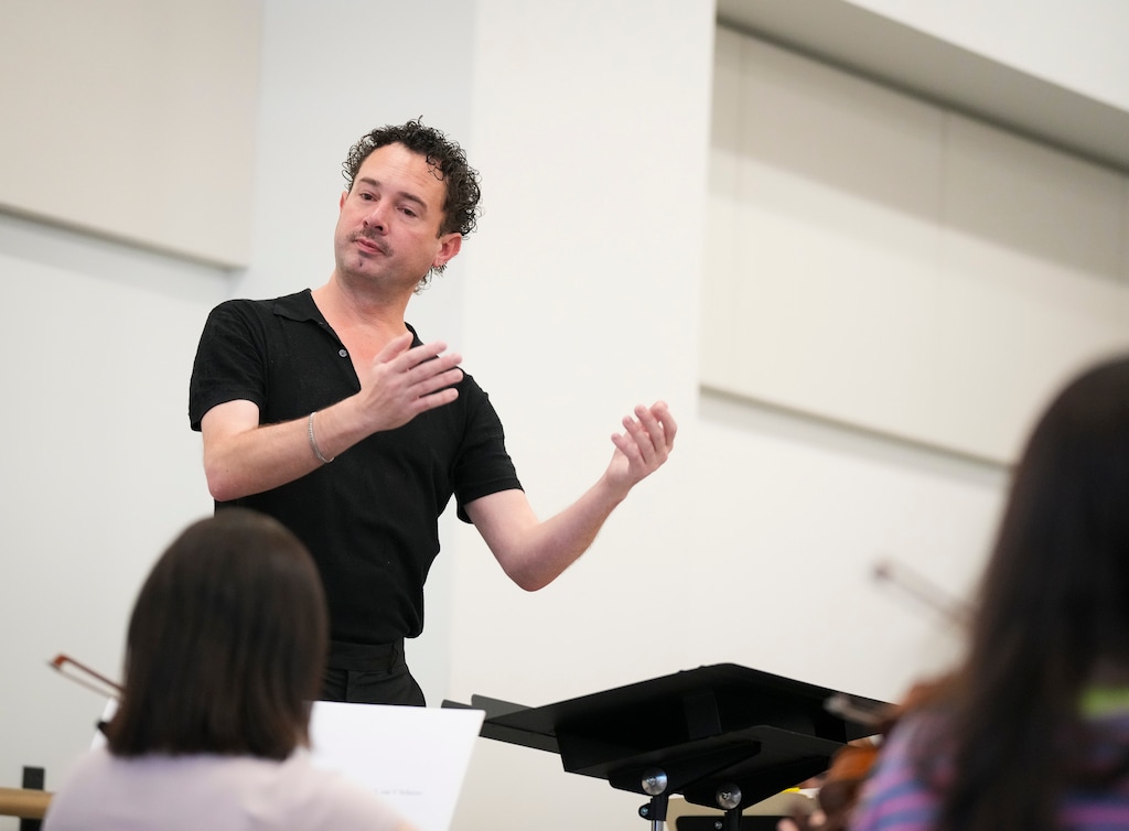 (Bethany Baker | The Salt Lake Tribune) Jared Oaks, music director for Ballet West, rehearses with the orchestra in Salt Lake City on Saturday, Oct. 19, 2024.