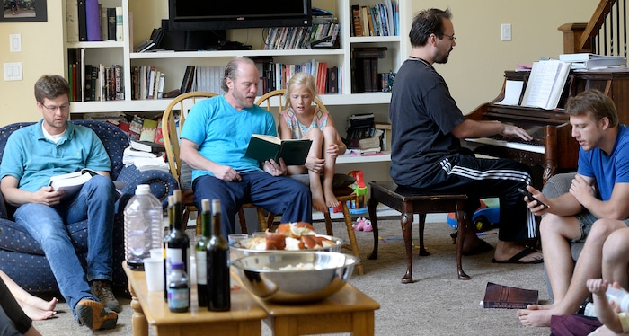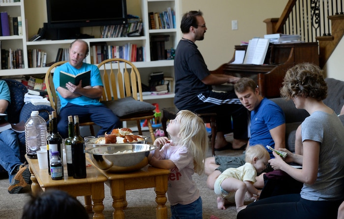 On a recent Sunday, a dozen members of a Remnant fellowship lounge on couches in Ken Jensen’s Sandy living room, with about the same number of children, some in arms, some sprawled across laps and some crawling on the floor. Print shirts, pants on women, and flip-flops give it a casual feel.