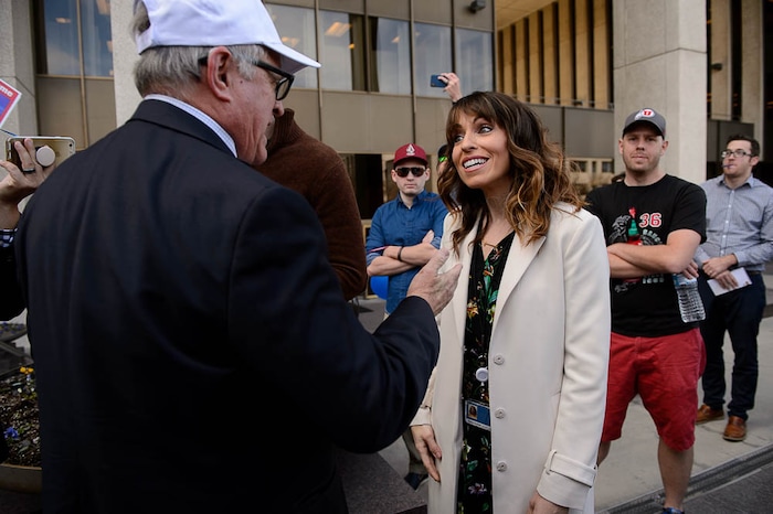Church spokeswoman Irene Caso stood outside to receive them as church workers looked down from the windows of the towering building.