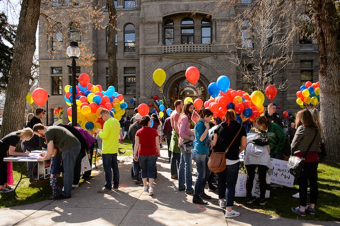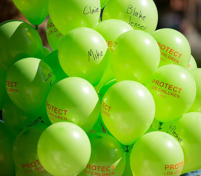 The protesters gathered at Salt Lake City Hall and spoke of years of frustration with the religious practice. They shared their own experiences. They carried signs that read “Pray for, don’t prey on, our children.” They held bright green balloons with names written in black of kids who were hurt by the interviews.