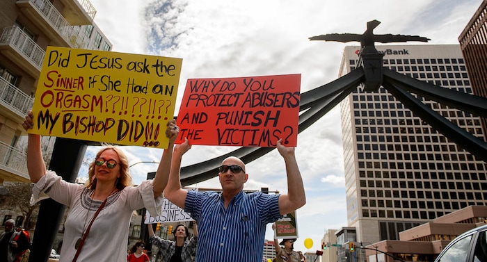 “There is no limit whatsoever to the gross, sexually explicit questions,” said Houston businessman Sam Young, a former Mormon bishop and the leader of the march.