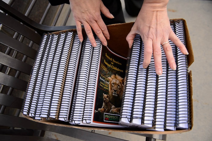 To the demonstrators, she said “thanks” and smiled. “Irene, I’m counting on you that this lands on their desk,” one man said as he handed her a booklet with Elder Jeffrey R. Holland’s name on it.