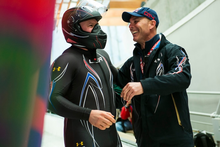 One of the first times Uhlaender and Holcomb hung out, she said, it was way back when she was brand new at the Olympic Training Center. After twisting his arm, she finally persuaded him to do something. So they grabbed Uhlaender’s small plastic practice push sled and rode it around the hallways of the center before eventually taking it into the parking lot.