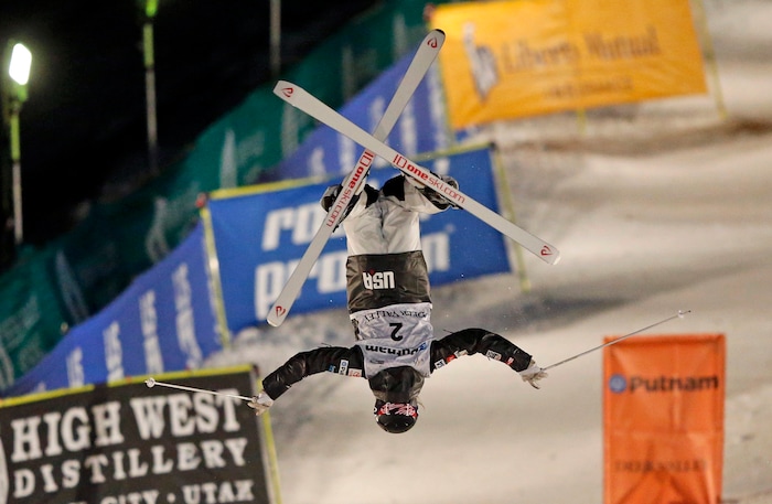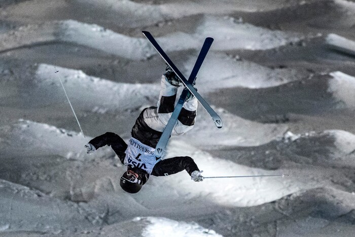 (Chris Detrick | The Salt Lake Tribune) USA's Jaelin Kauf (1) competes in the Ladies' Mogul Finals during the FIS Visa Freestyle International Ski World Cup at Deer Valley Resort Thursday, January 11, 2018. Kauf finished in first place with a score of 81.37.