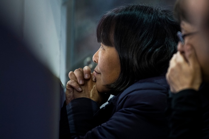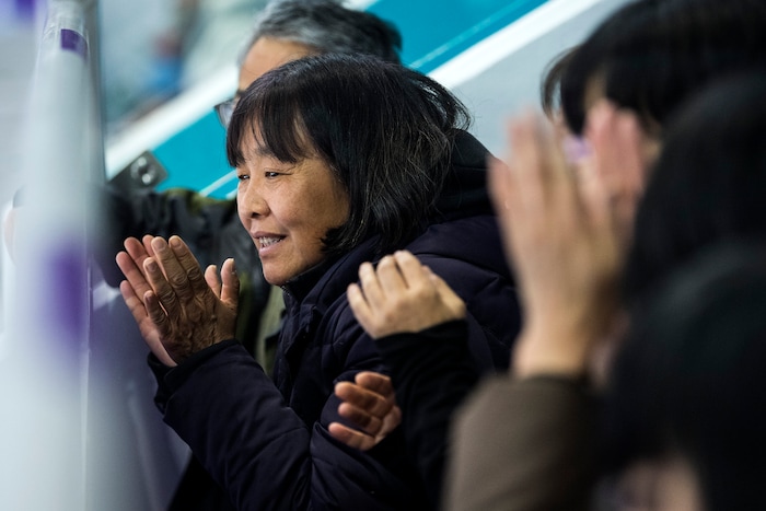(Chris Detrick | The Salt Lake Tribune) Hetty Wang watches as her son Nathan Chen competes in the Men Single Skating Free Skating at Gangneung Ice Arena during the Pyeongchang 2018 Winter Olympics Saturday, Feb. 17, 2018. Chen landed a record six quadruple jumps, scoring 215.08.