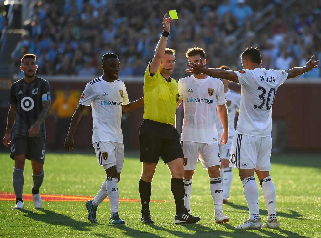 Rimando immediately jumped up off the ground and charged at the referee about the lack of a call, and RSL coach Mike Petke was ejected after storming along the sidelines, angrily shouting at the referee and the fourth official on the sidelines.