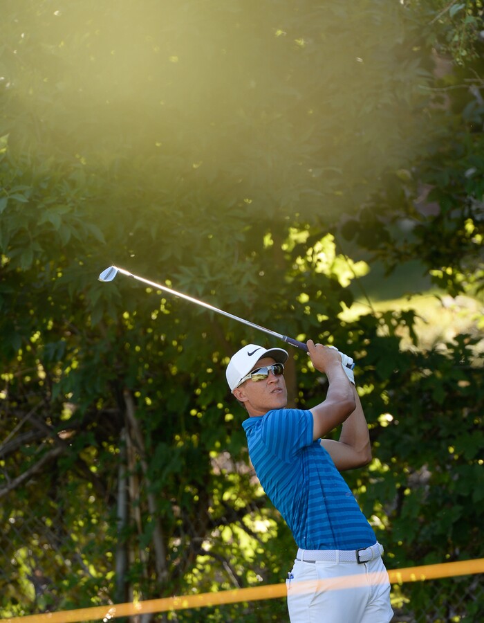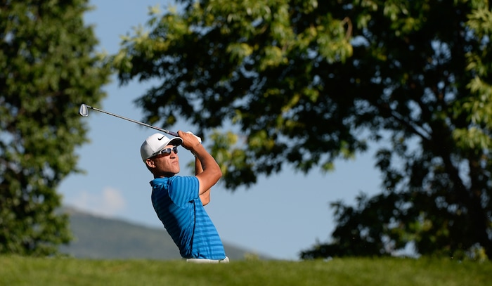 (Francisco Kjolseth | The Salt Lake Tribune) Cameron Champ from Sacramento, CA, competes during the final day of the Utah Championship golf event on the Web.com Tour at Oakridge Country Club in Farmington on Sunday, July 15, 2018, on his way to winning the championship.