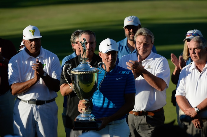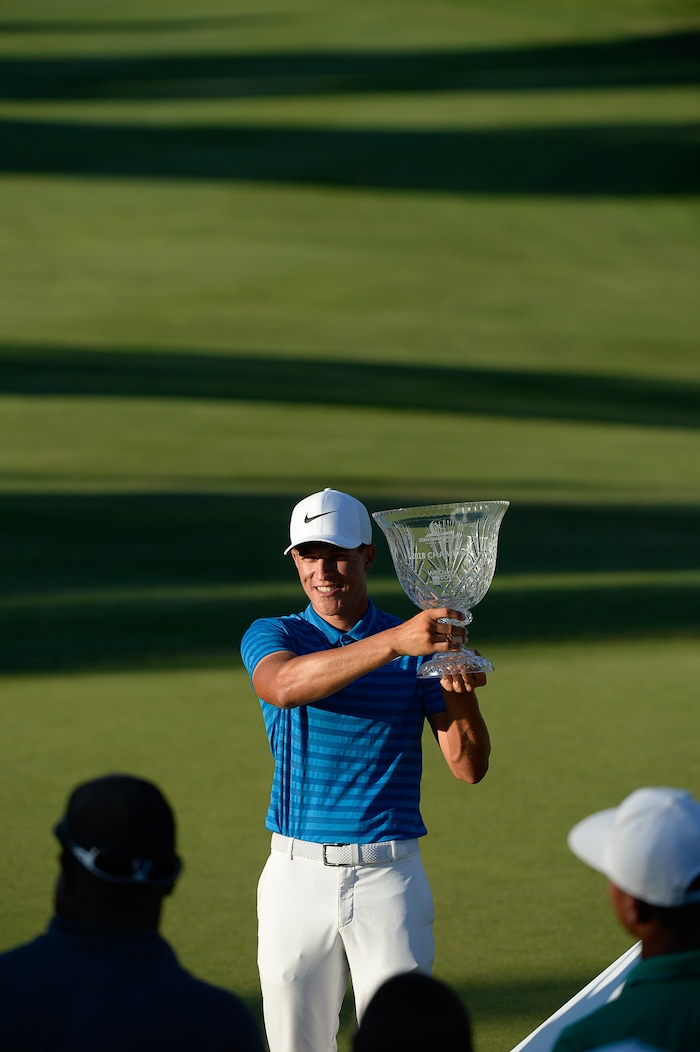 (Francisco Kjolseth | The Salt Lake Tribune) The Billy Casper Cup will be engraved with a new name as Cameron Champ wins the Utah Championship golf event on the Web.com Tour at Oakridge Country Club in Farmington on Sunday, July 15, 2018.