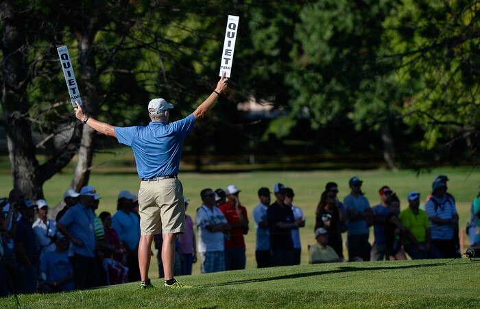 (Francisco Kjolseth | The Salt Lake Tribune) The crowds are silenced during the Utah Championship golf event on the Web.com Tour at Oakridge Country Club in Farmington on Sunday, July 15, 2018.