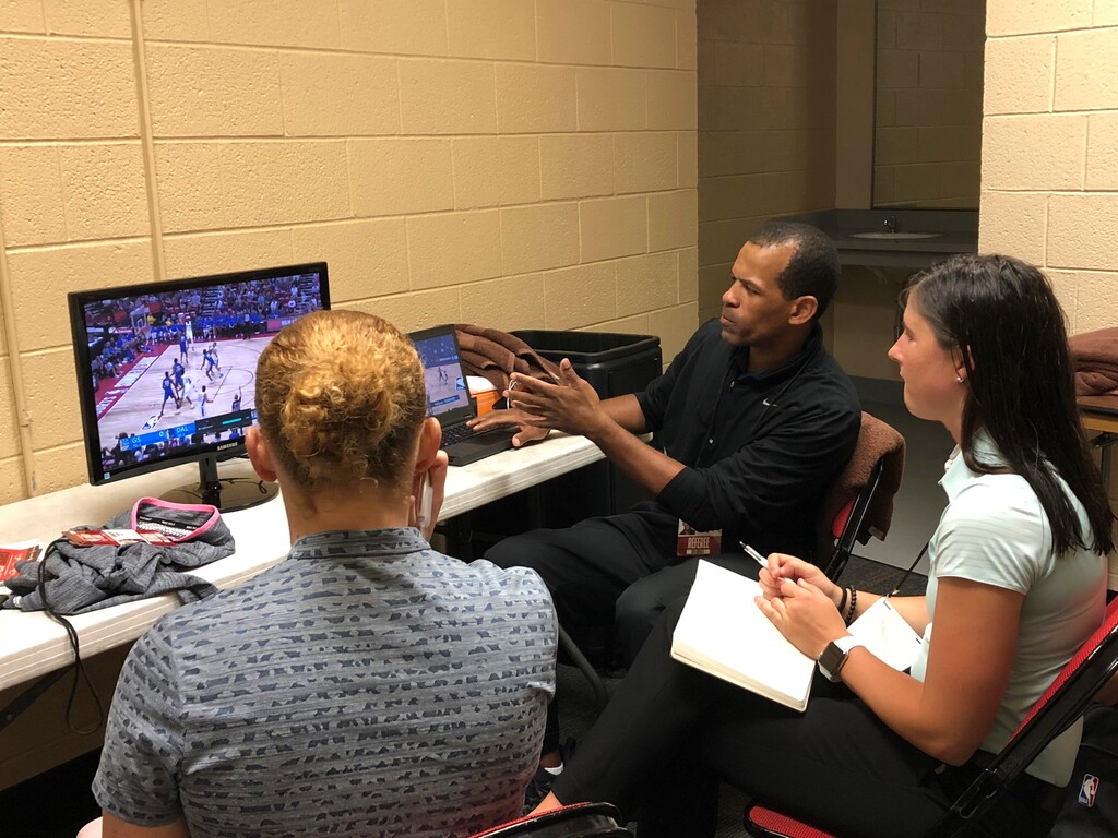During their classroom session with longtime NBA ref Eric Lewis, the three spoke in sync, even finishing each other’s thoughts on a couple occasions. Retired refs Bernie Fryer and Mark Wunderlich were in and out of the room as well, offering their thoughts on whatever play happened to be on the screen at a given time.