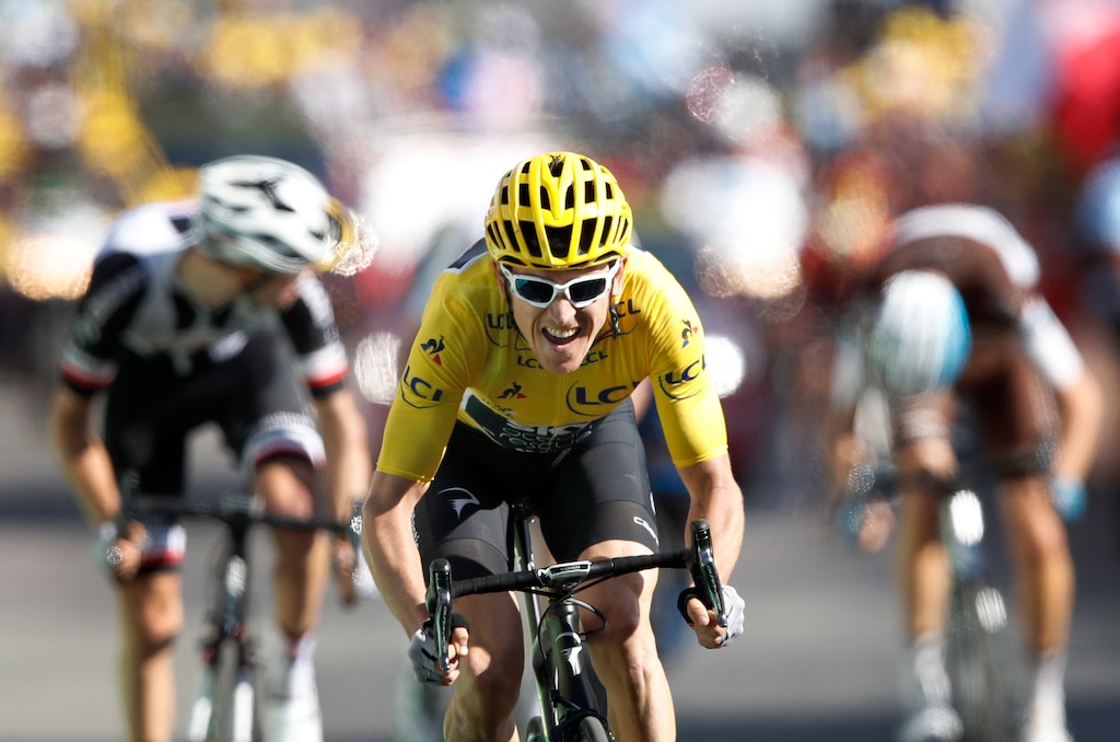 Thomas sprinted away from Sky teammate Froome and a couple of other riders to win Stage 12, becoming the first rider in Tour history to win atop Huez in the yellow jersey.