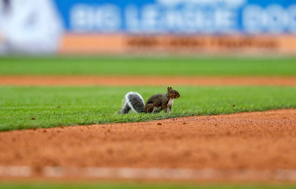 During the 2011 NL Division Series, a squirrel cut across the diamond at Busch Stadium, running right past home plate during a game against Philadelphia. The Cards went on to win the playoff series and later the championship — their World Series rings even depicted a squirrel.