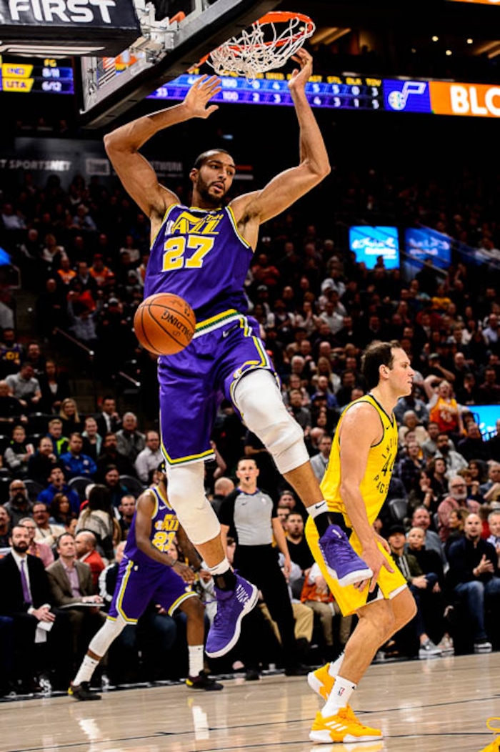 Utah Jazz center Rudy Gobert (27). Utah Jazz v Indiana Pacers, NBA basketball at Vivint SmartHome Arena in Salt Lake City on Monday Nov. 26, 2018.