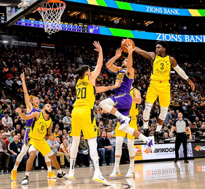 The Jazz’s forte Sunday in Sacramento was its team-wide balance. On Monday, though, that was Indiana’s calling card. The Pacers saw seven players reach double-digits in scoring, led by Doug McDermott’s 21 off the bench.