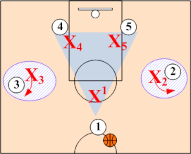 The triangle-and-two is a gimmick defense, basically used way more in high school and college where more players can’t shoot. Essentially, the defense dedicates two guys to faceguarding the two stars, then aligns everyone else in a triangle zone that can sinks into the paint.