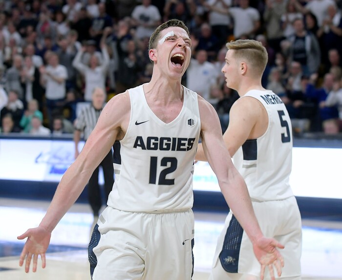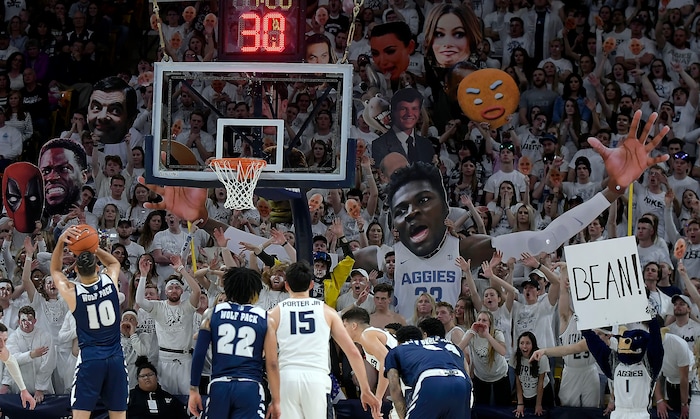 Some recent projections even had USU playing the West region — at Vivint Smart Home Arena. In Salt Lake City. After the scene at the Spectrum in Logan last weekend following the win over Nevada, it’s easy to get carried away thinking of the home-court advantage this potential No. 8 or No. 9 seed could have.