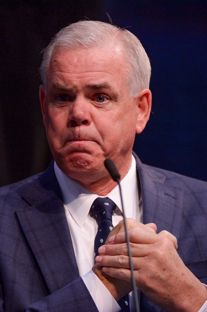 Leah Hogsten | The Salt Lake Tribune BYU athletic director Tom Holmoe listens as BYU basketball coach Dave Rose talks about his career. Rose announced on Tuesday that he was retiring after a 14-year career in which he became BYUÕs all-time winningest menÕs basketball coach.