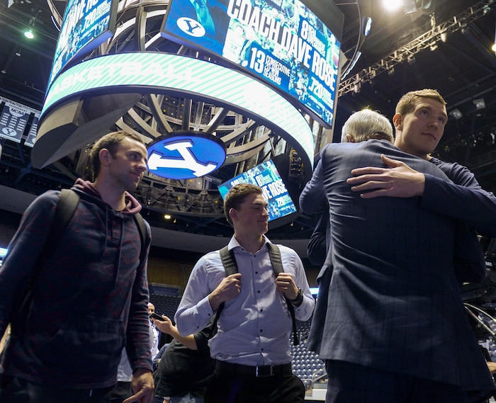 Leah Hogsten | The Salt Lake Tribune ÒWe had a lot of wins, and I hope everybody had fun," said Rose, who finished second on the schoolÕs all-time winning list. Dave Rose announced on Tuesday that he was retiring after a 14-year career in which he became BYUÕs all-time winningest menÕs basketball coach. Rose hugs players above in the Marriott Center.