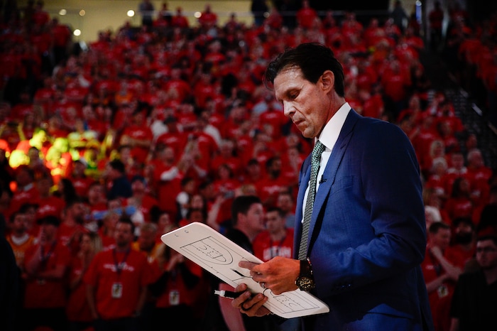 (Francisco Kjolseth | The Salt Lake Tribune) Utah Jazz head coach Quin Snyder prior to Game 3 of a first-round NBA basketball playoff series against the Rockets in Salt Lake City, Saturday, April 20, 2019.