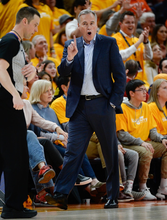 (Francisco Kjolseth | The Salt Lake Tribune) Houston Rockets head coach Mike DÕAntoni argues with the referee in Game 3 of a first-round NBA basketball playoff series against the Jazz in Salt Lake City, Saturday, April 20, 2019.