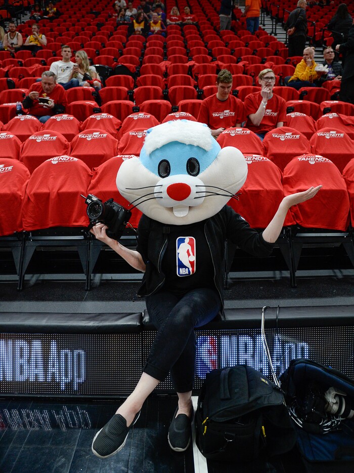 (Francisco Kjolseth | The Salt Lake Tribune) Utah Jazz team photographer Melissa Majchrzak considers a fresh role during Easter weekend prior to Game 3 of a first-round NBA basketball playoff series against the Rockets in Salt Lake City, Saturday, April 20, 2019.