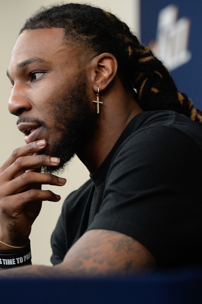 (Francisco Kjolseth | The Salt Lake Tribune) Jae Crowder of the Utah Jazz speaks with the media following their season-ending game at the team practice facility on Thursday, April 25. 2019.