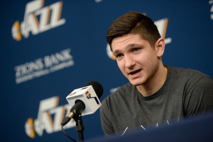 (Francisco Kjolseth | The Salt Lake Tribune) Grayson Allen of the Utah Jazz speaks with the media following their season-ending game at the team practice facility on Thursday, April 25. 2019.