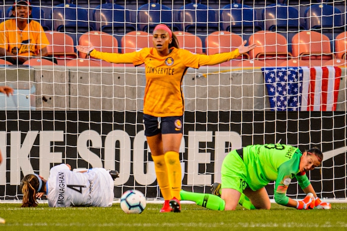 The 16th-minute goal came in impressive fashion. Rodriguez picked the ball well on her side of the halfway line, then dribbled all the way to about 25 yards from the goal against a retreating Sky Blue defense. Given the space, Rodriguez took a shot — one she didn’t believed she could score.