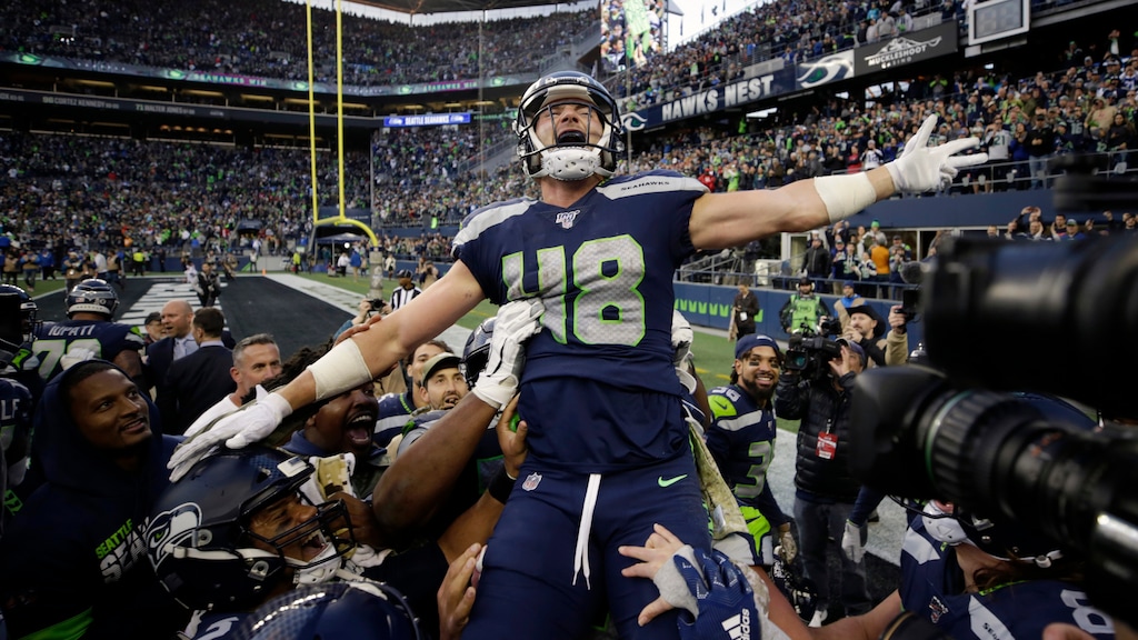 The teams then matched touchdowns in regulation, before the Seahawks won the coin toss and Wilson's offense kept their defense from having to take the field. On a third-and-6 play from the Bucs 35, Wilson floated a 29-yard pass to DK Metcalf down the sideline. That completion set up the winning play, as Wilson topped his 378-yard passing day.