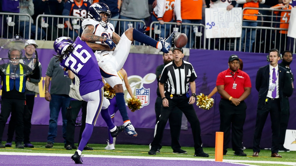 With first-and-goal from the 4, but only 10 seconds left and no timeouts remaining, Allen had three chances at the winner. Trae Waynes knocked down the first one, Jayron Kearse had a hand on the second and the last try for Noah Fant sailed past the rookie tight end after he and Kearse tussled for position.