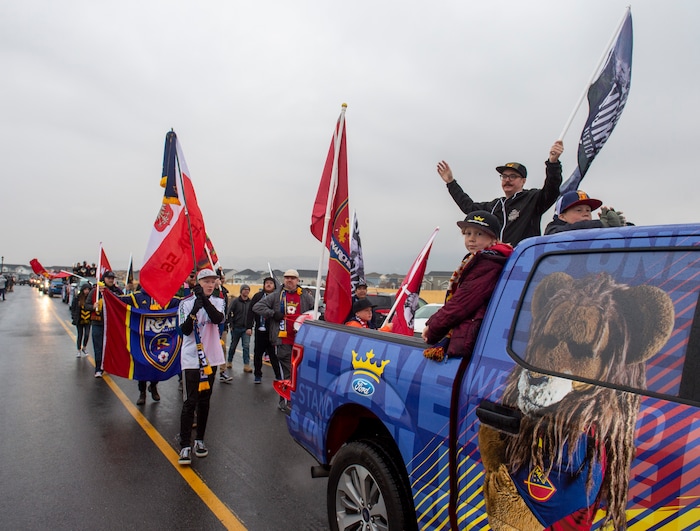 (Rick Egan | The Salt Lake Tribune) The Real Monarchs supporters celebrate the Monarch's USL Cup Championship, during their championship parade at Lynn Crane Park in Herriman, Wednesday, Nov. 20, 2019.