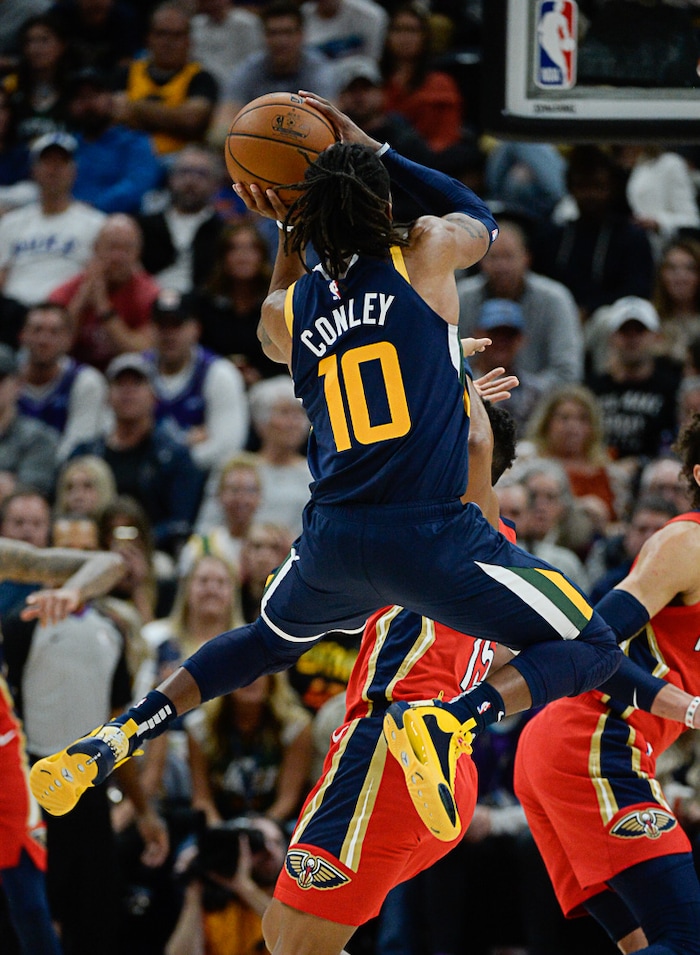 On several occasions in the final minutes, the Pelicans crawled within seven — only for the Jazz to answer back. A Mike Conley-to-Bogdanovic alley-oop here, a Conley 3-pointer there, and plenty of trips to the foul line besides.