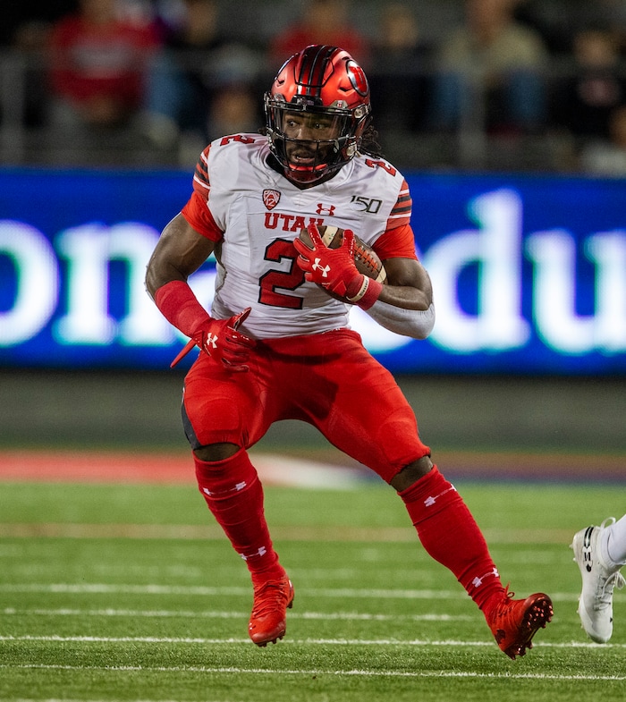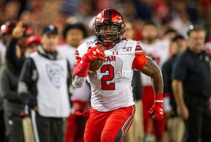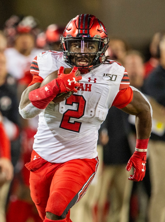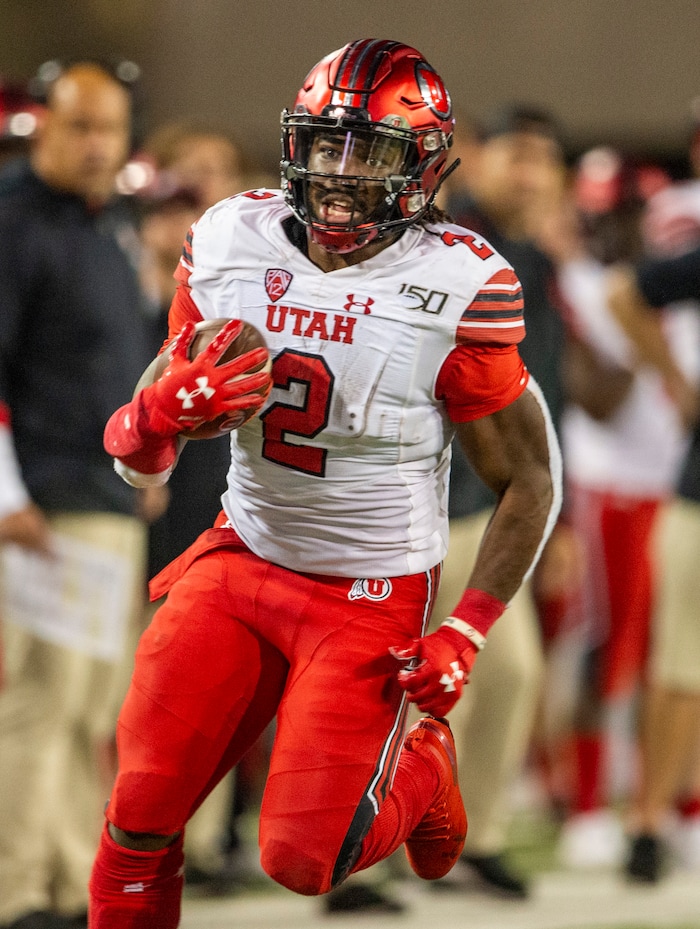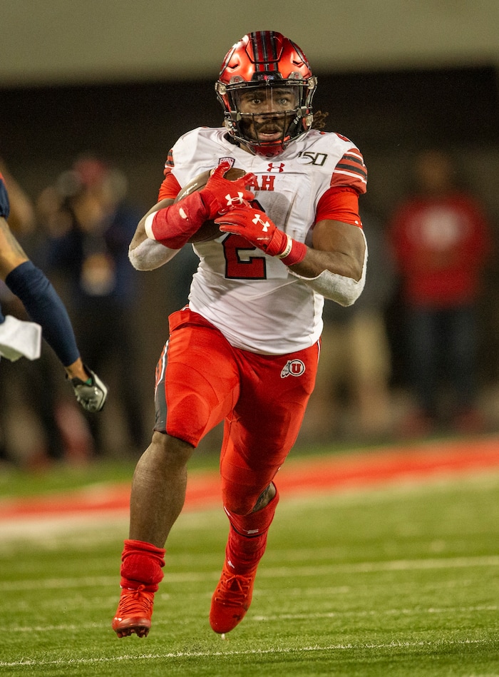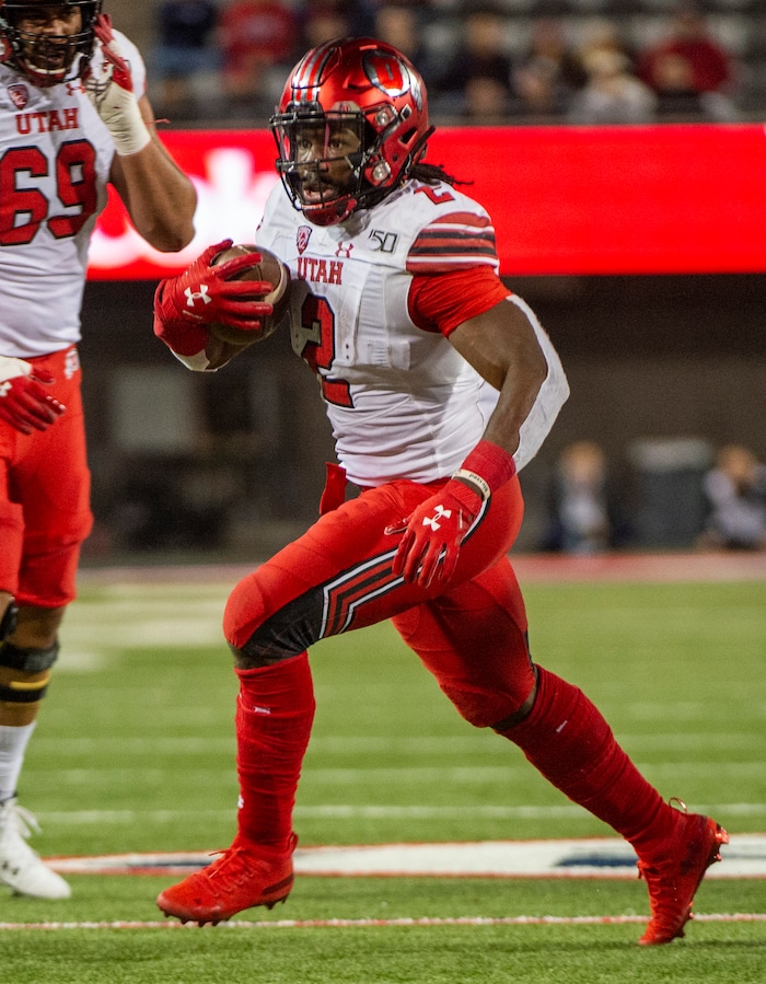 (Rick Egan | The Salt Lake Tribune) Utah Utes running back Zack Moss (2), runs the ball for the Utes, in PAC-12 action between the Utah Utes and the Arizona Wildcats in Tucson, Saturday, Nov. 23, 2019.