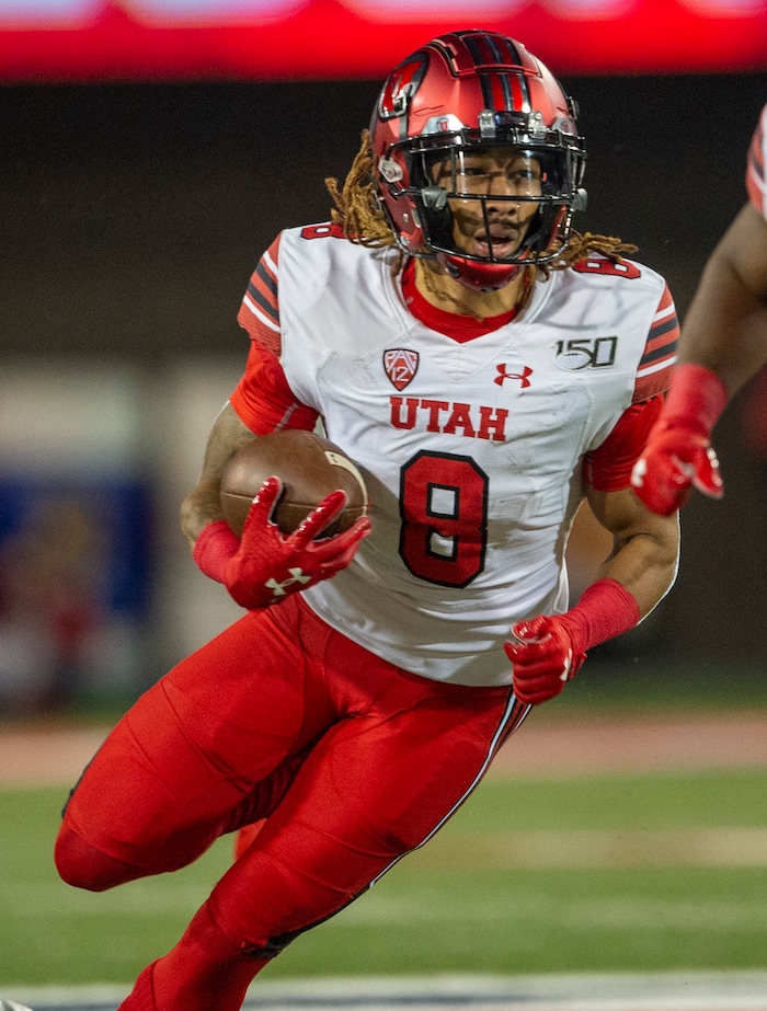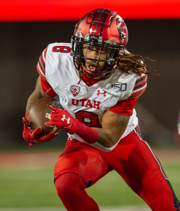 (Rick Egan | The Salt Lake Tribune) Utah Utes wide receiver Derrick Vickers (8) runs the ball, in PAC-12 action between the Utah Utes and the Arizona Wildcats in Tucson, Saturday, Nov. 23, 2019.