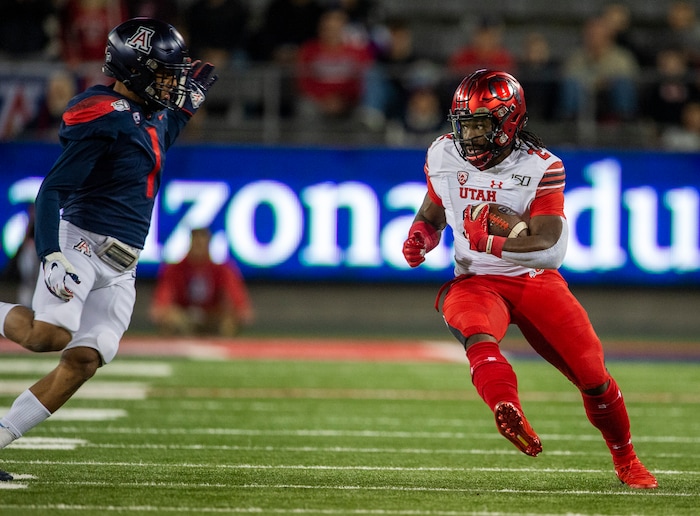 (Rick Egan | The Salt Lake Tribune) Utah running back Devin Brumfield (6) runs the ball for the Utes, in PAC-12 action between the Utah Utes and the Arizona Wildcats in Tucson, Saturday, Nov. 23, 2019.