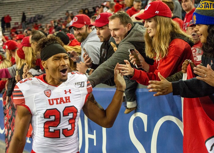 (Rick Egan | The Salt Lake Tribune) Utah Utes defensive back Julian Blackmon (23) after they defeated the Wildcats, 35-7, in PAC-12 action between the Utah Utes and the Arizona Wildcats in Tucson, Saturday, Nov. 23, 2019.