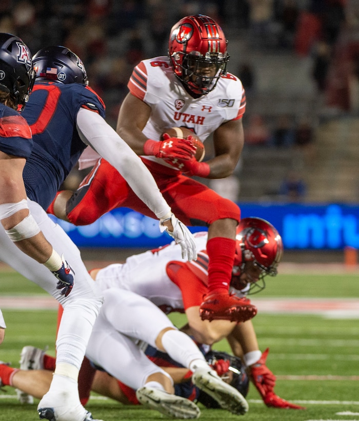 (Rick Egan | The Salt Lake Tribune) Utah running back Zack Moss (2) runs the ball for the Utes, in PAC-12 action between the Utah Utes and the Arizona Wildcats in Tucson, Saturday, Nov. 23, 2019.