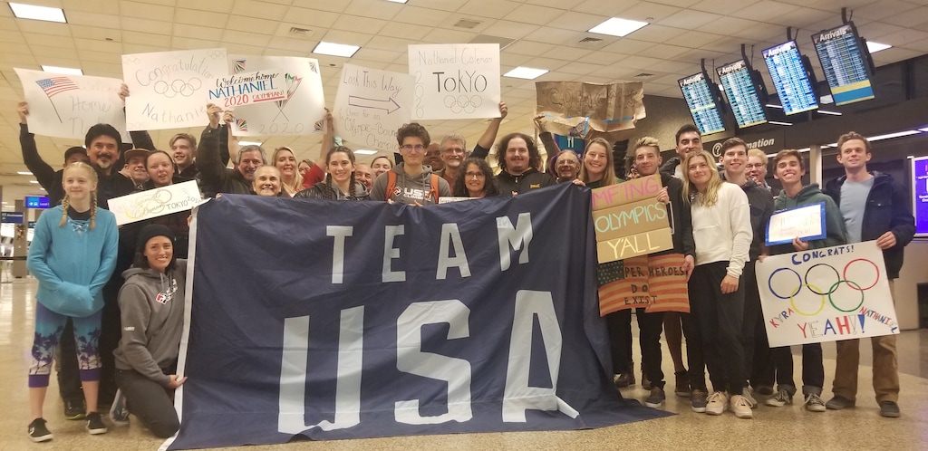 It wasn’t turmoil so much as hubbub that he got at the airport. Many of the posters, placards and the Team USA banner were hoisted by family, kids from his former Momentum Climbing club or members of his church. They extended their excitement to Condie, however, who moved to Salt Lake City from Minnesota three weeks ago to focus on Olympic qualifying.